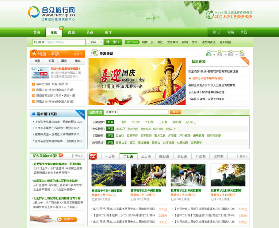 合众旅行网是桂林合众国际旅游有限公司旗下专业从事在线旅游服务的网站,合众旅行网的品牌色调为绿色、橙色、蓝色,清新明快、充满活力,代表了旅游者轻松愉快、纵情山水的情怀。